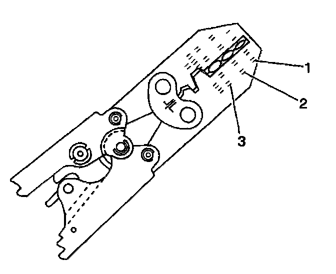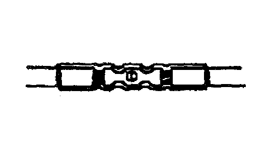 6. Place the splice sleeve in the nest. Ensure that the crimp falls midway between the end of the barrel and the stop. The sleeve has a stop (3) in the middle of the barrel (2) in order to prevent the wire (1) from going further. Close the hand crimper handles slightly in order to firmly hold the splice sleeve in the proper nest.