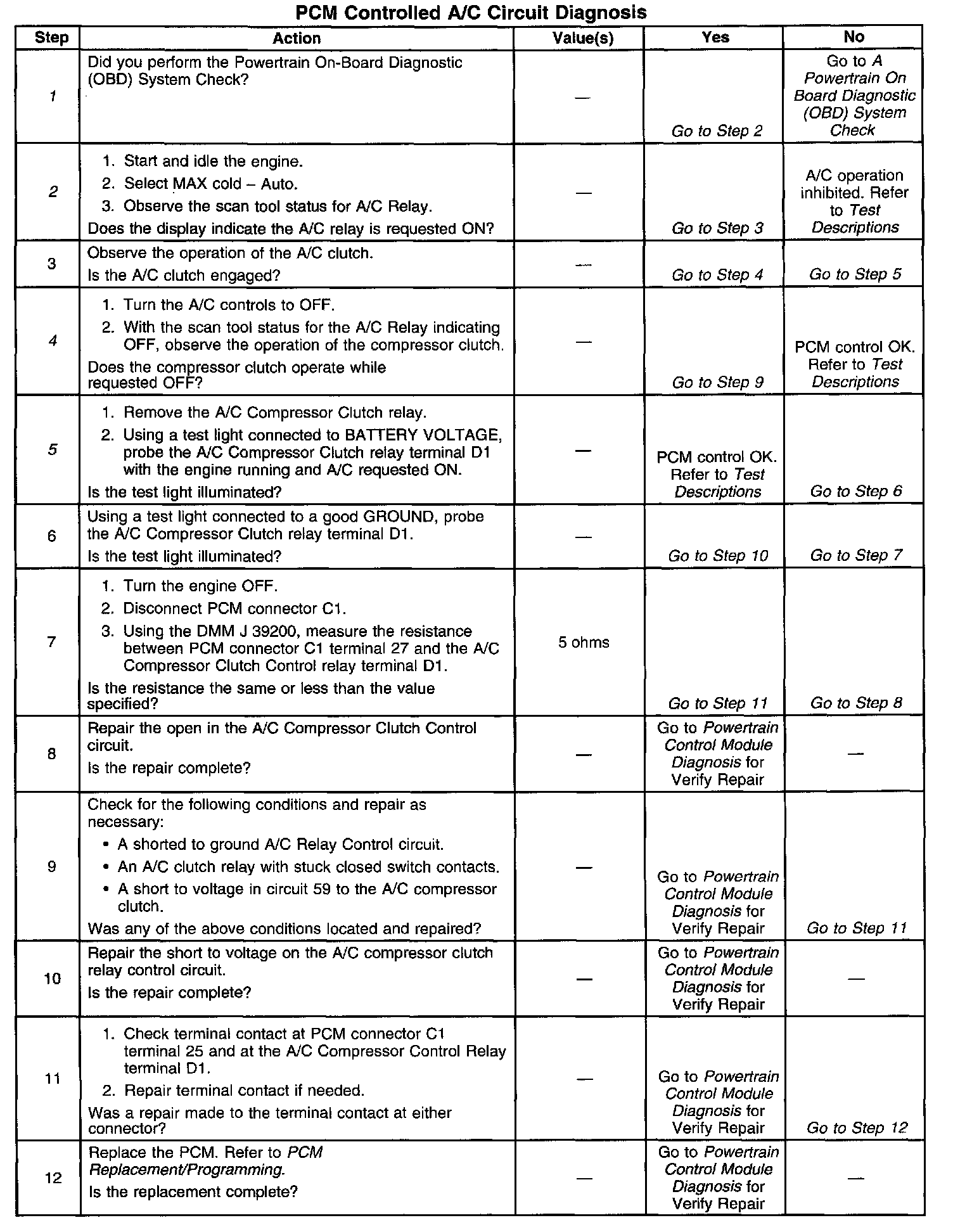 PCM Controlled A/C Circuit Diagnosis