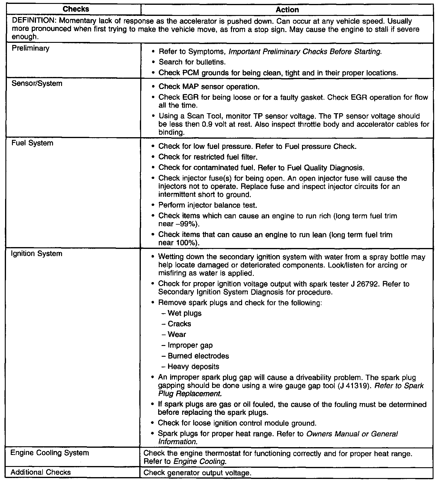 Hesitation, Sag or Stumble