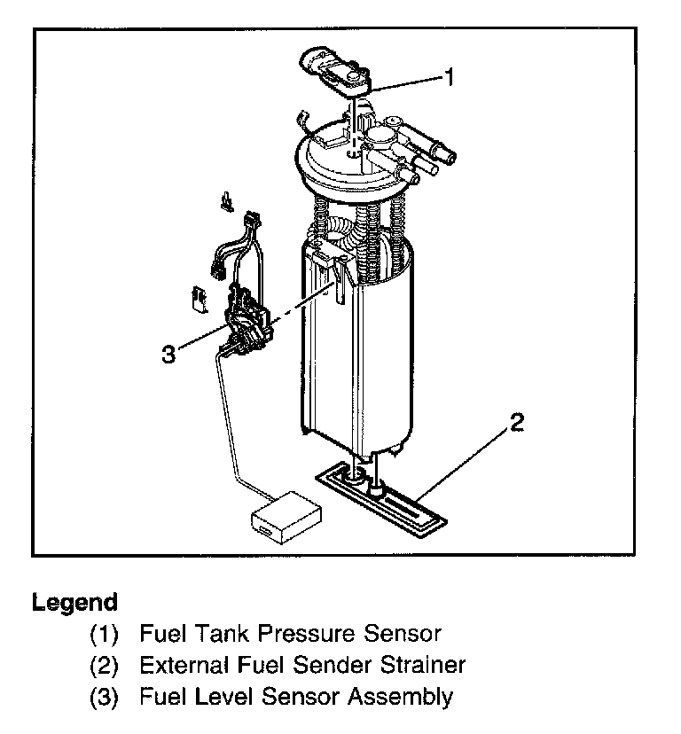 The serviceable components on the modular fuel sender are the fuel sender strainer, the fuel level sensor assembly, and the fuel tank pressure sensor.