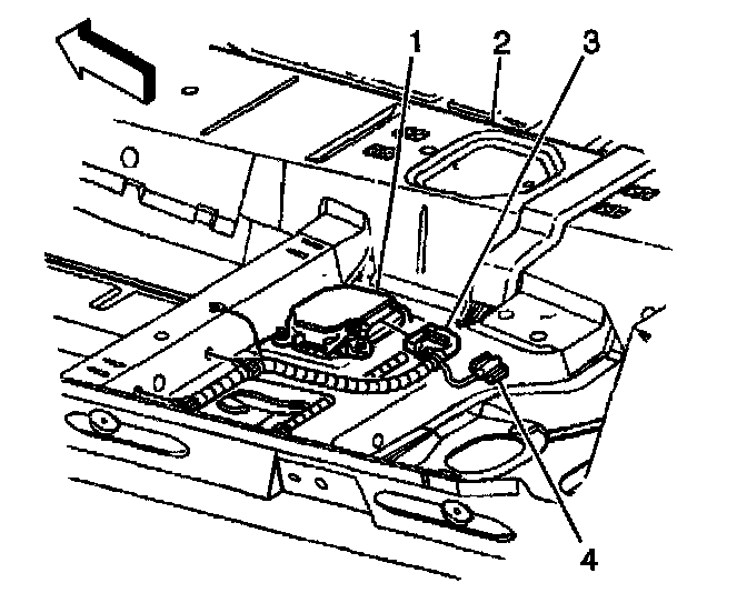 1. Install the SDM (1) to the floor sheetmetal (2).