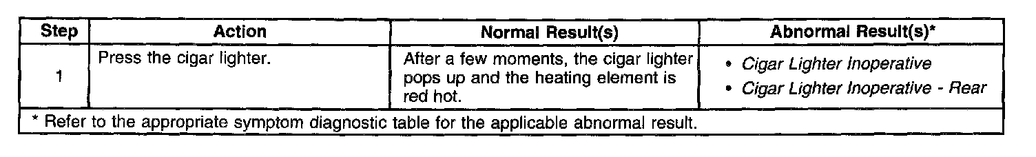 Cigar Lighter/Auxiliary Outlets System Check: