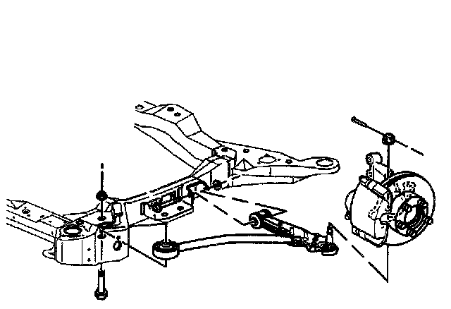 7. Remove the control arm forward and rearward nut and bolts.
