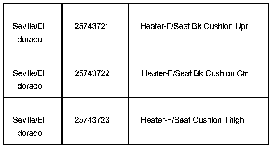 1994-2002 Eldorado LH F/Seat Heat Element Locations (RH Similar)