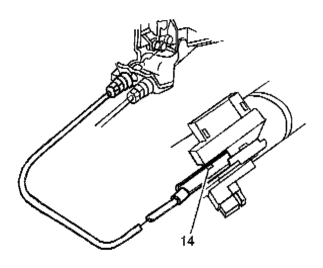 6. Push the park lock cable towards the range control lever assembly in order to remove the slack.