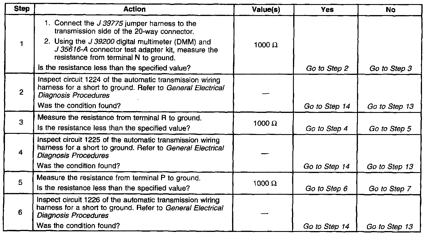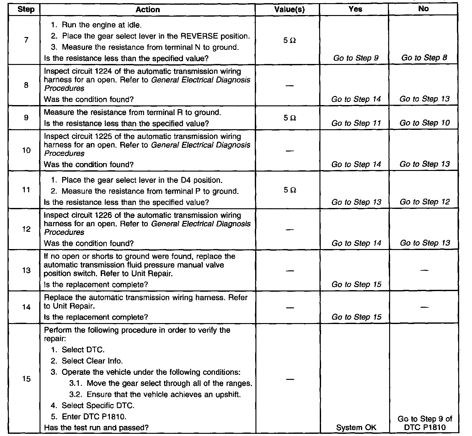 ) Manual Valve Position Switch Resistance Check