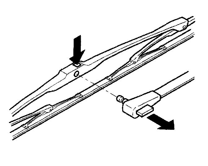 4. Remove the wiper blade from the wiper arm by pushing down on the release latch and pulling the wiper blade from the wiper arm.