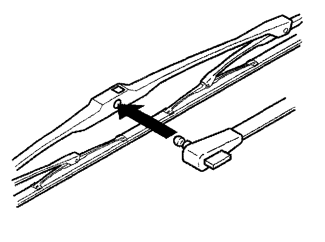 IMPORTANT: Use only 22-inch beam-type blades. With the windshield wipers at the midwipe position, the blades must be installed with the wiper blade element notches pointed toward the head casting of the wiper arm.