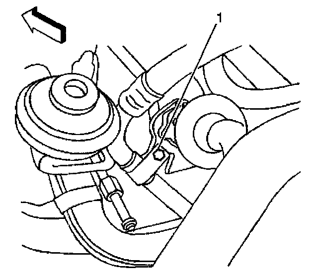 9. Install the compressor hose clamp to air pipe bracket bolt (1).