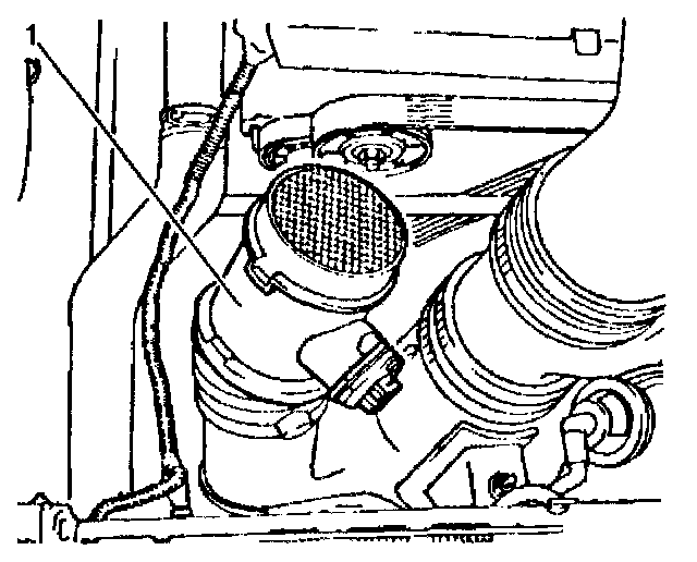 1. Install the MAF/IAT sensor (1) into the lower air intake duct. An arrow on the MAF/IAT sensor shows the proper flow direction.