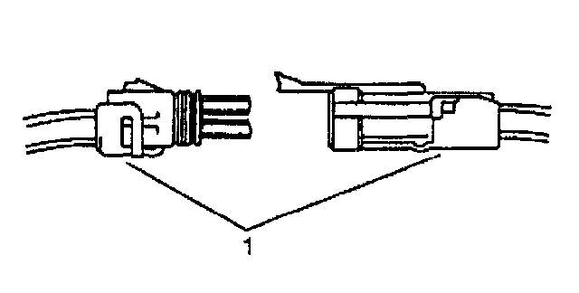 The following is the proper procedure for the repair of Weather Pack(R) Connectors.^ Separate the connector halves (1).