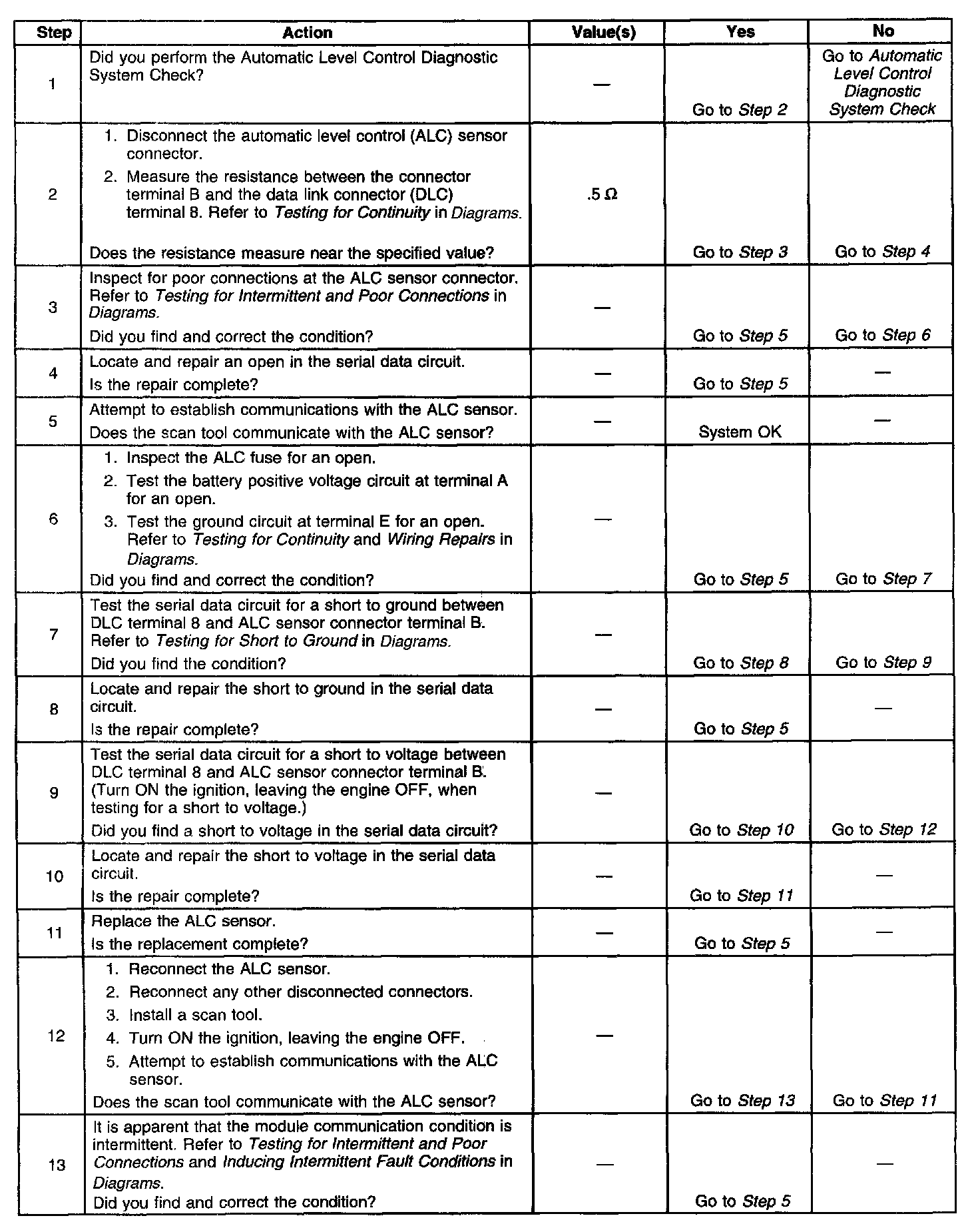 Scan Tool Does Not Communicate With ALC Sensor