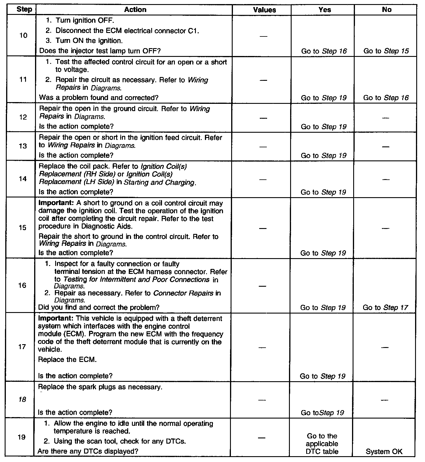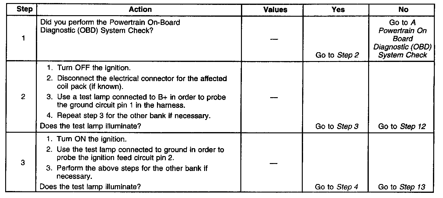 9. This step is to verify the operation of the ignition coil control circuit and the driver in the ECM.