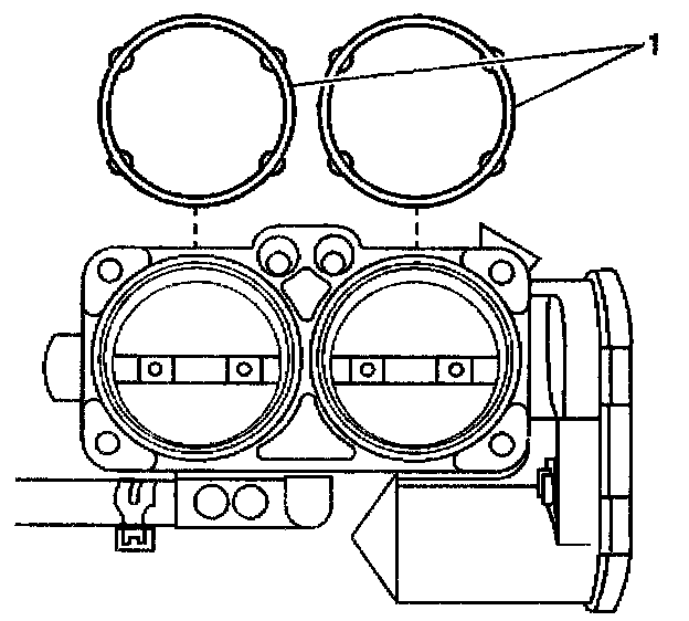 1. Install the throttle body assembly with the TP sensor. Ensure that the O-rings are properly positioned. The O-rings should seal to the intake plenum.