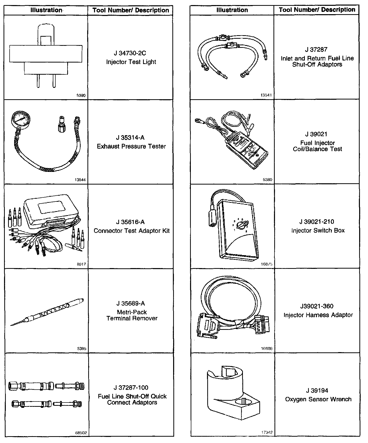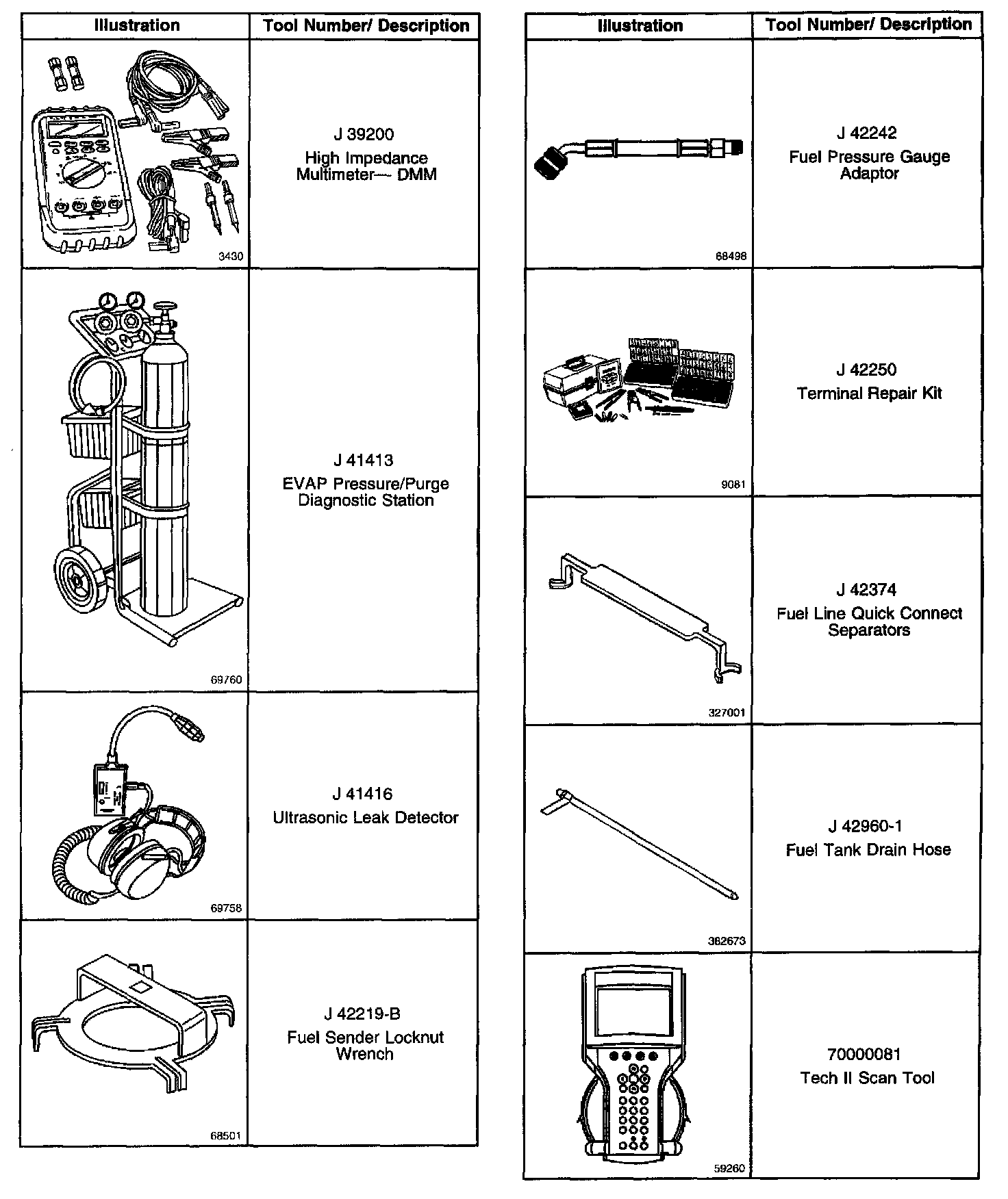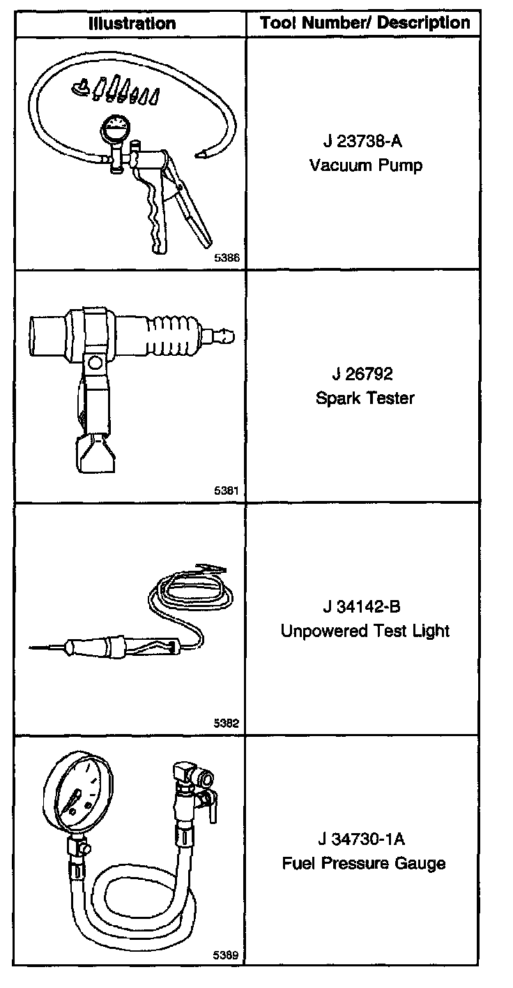 Not all of the tools listed are required for this specific application. If a special tool is required, the J number will be called out in the diagnostic procedure. The abilities and limitations of a tool must be known before the tool is used. This knowledge should include the scan tool operation, the proper use of test lamps, the jumper wires, and the DMM.