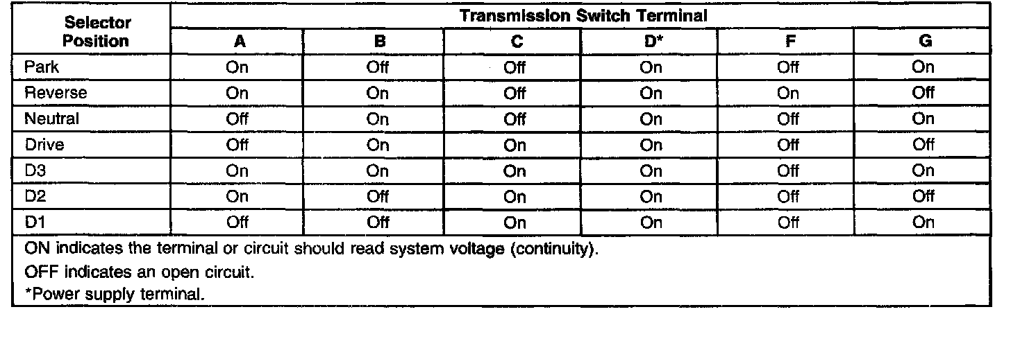 Automatic Trans Manual Shaft Shift Position Switch Logic Table