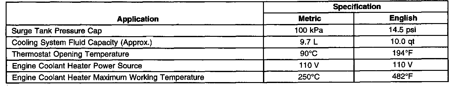Engine Cooling System Specifications