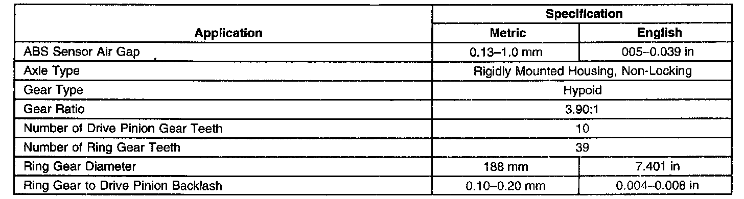 Rear Axle Specifications
