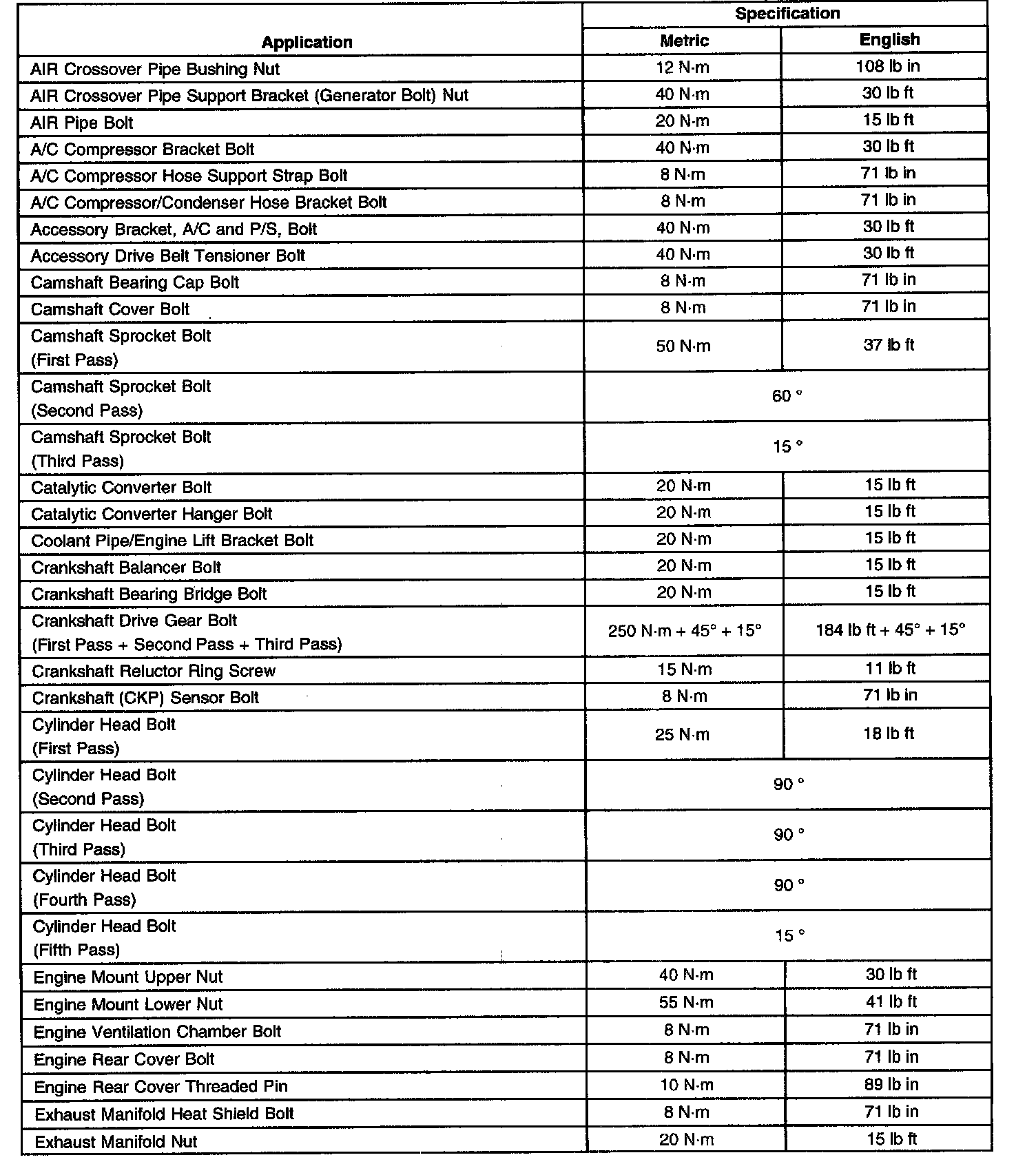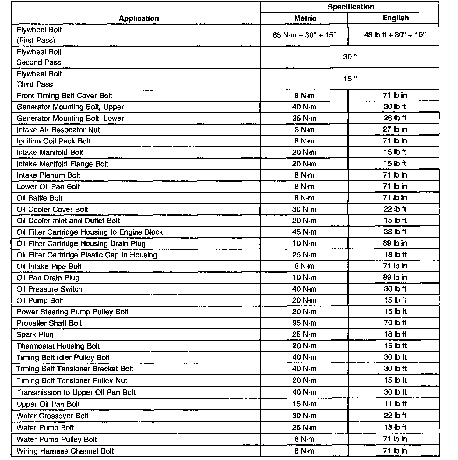 Fastener Tightening Specifications