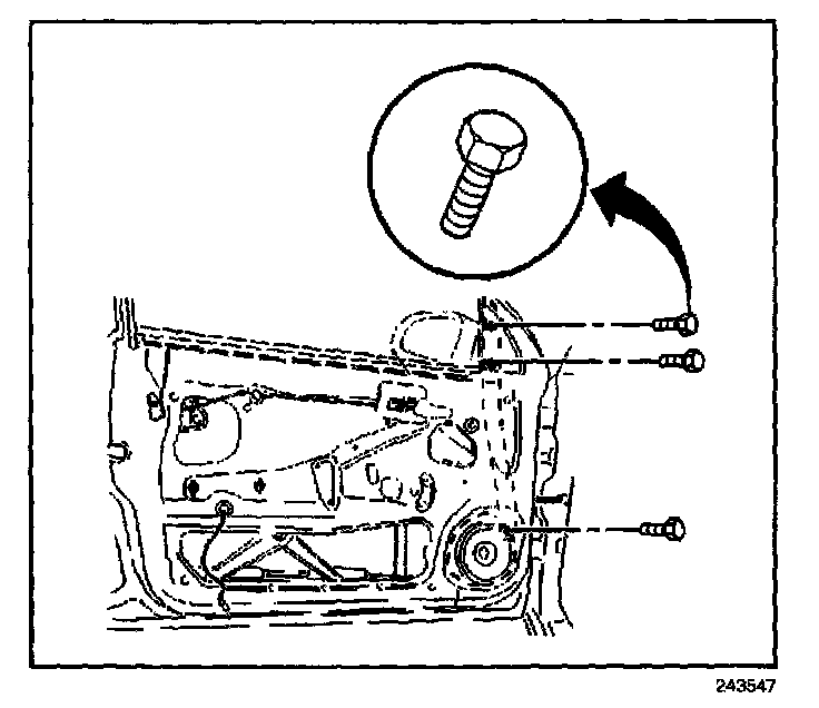 Tighten the door window lower channel bolts to 7 N.m (62 lb in).