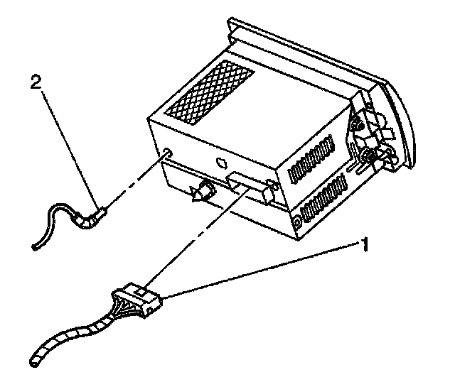 1. Partially install the navigation display in order to connect the antenna (2) and the electrical connectors (1).