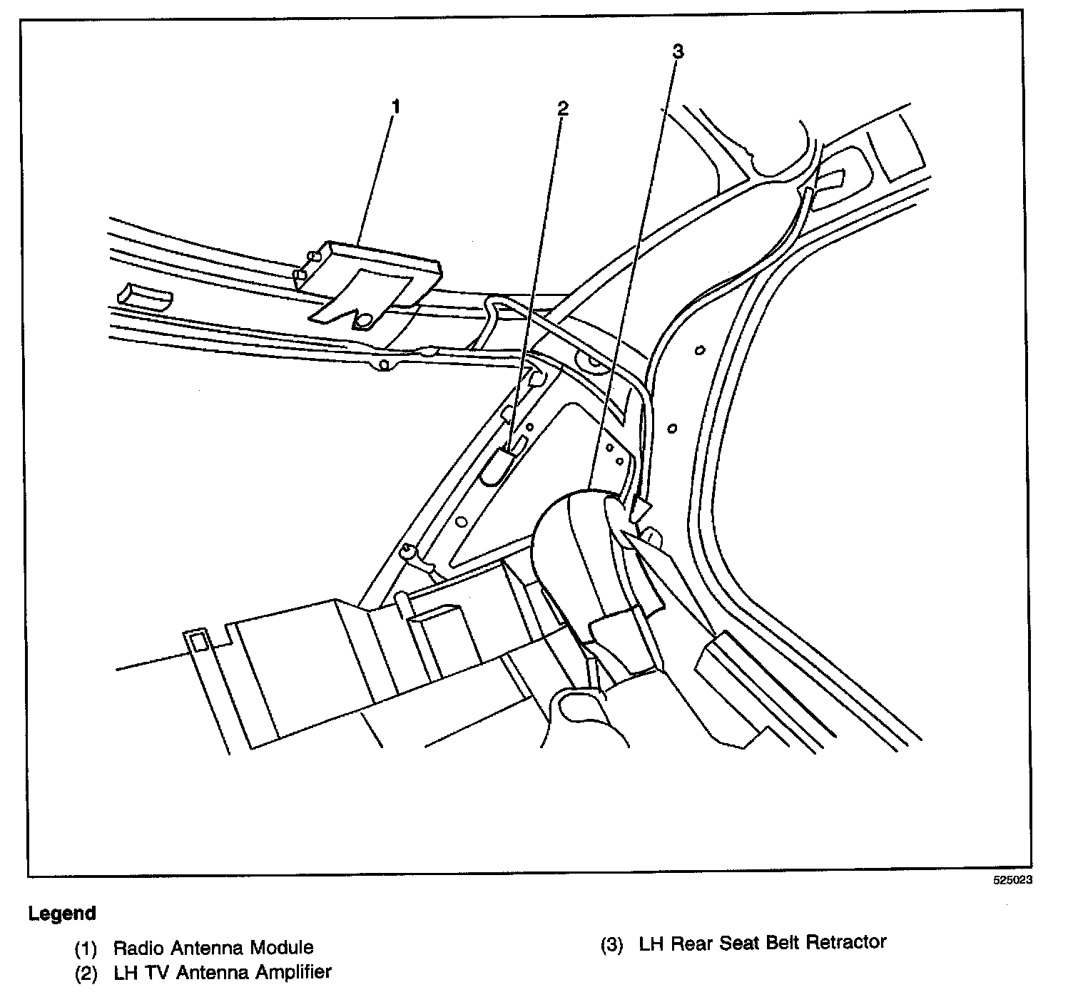 Center rear passenger compartment, behind the headliner