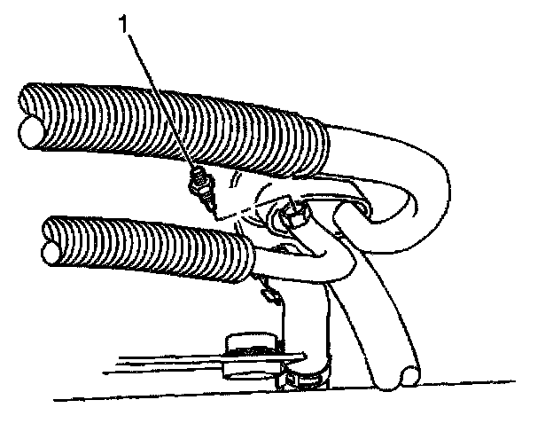 1. Ensure the low side A/C temperature (1) sensor has a O-ring installed and the O-ring is not damaged.