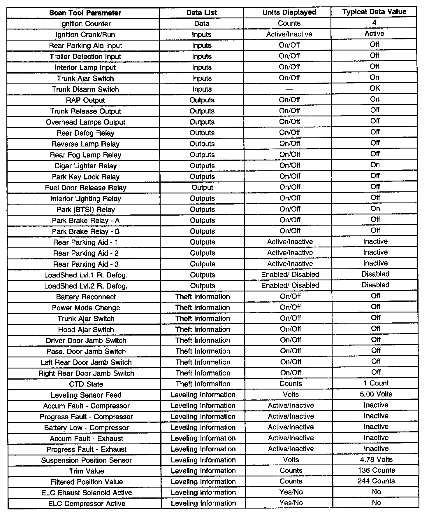 Scan Tool Data List