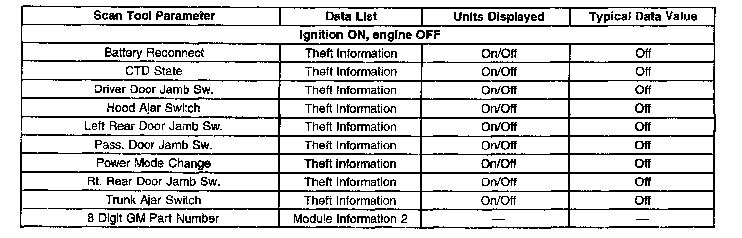 Scan Tool Data List - Antitheft System