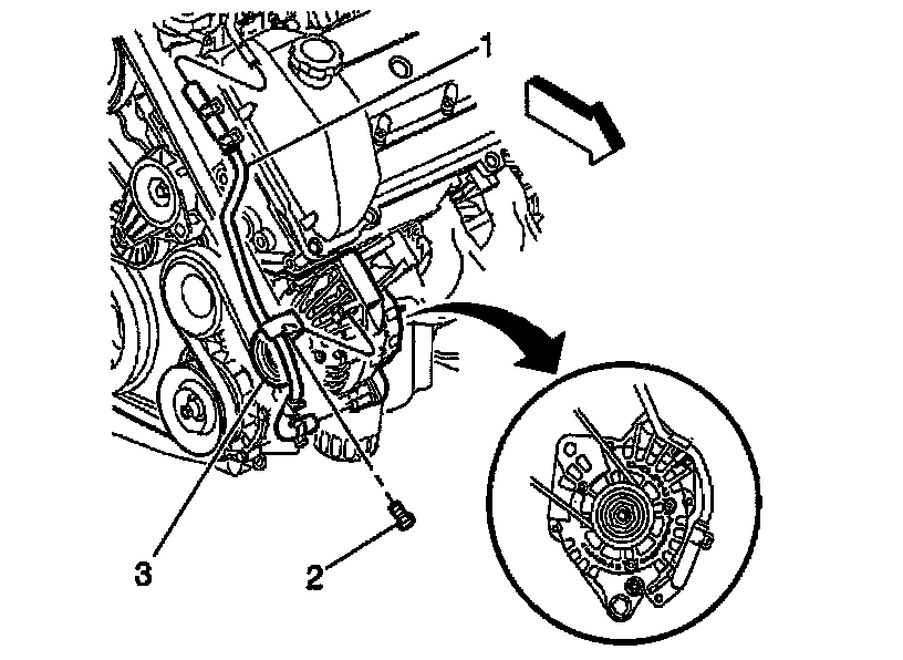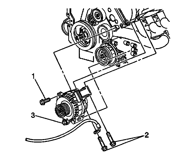 8. Loosen the lower generator bolt (3).