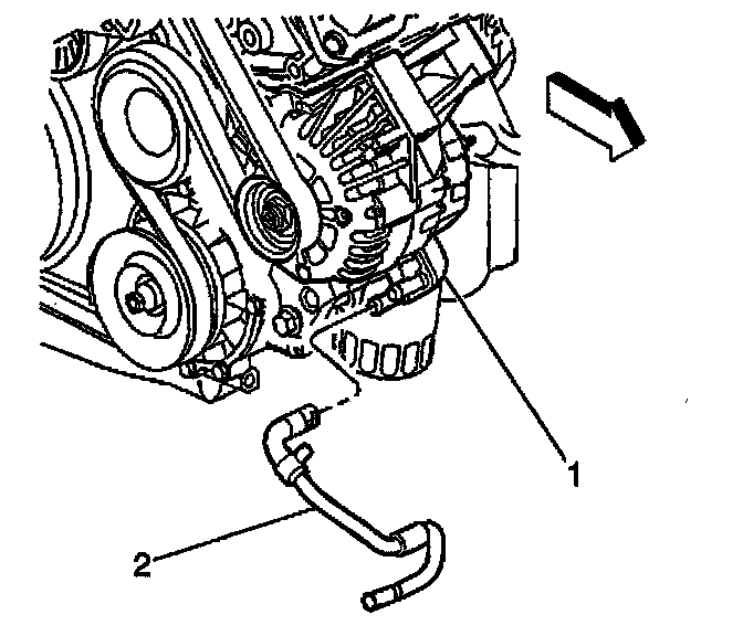 6. Disconnect the generator cooler inlet hose (2) from the generator (1).