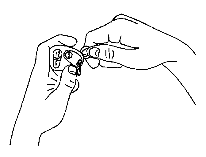 1. Insert a small coin between the 2 halves of the transmitter case at the slot provided near the key ring hole.