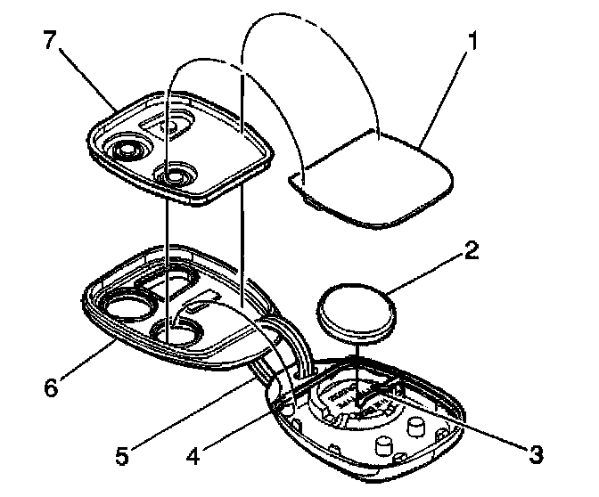 1. Install the battery (2) with the positive (+) side down. Use one 3 V CR2302 battery or the equivalent.