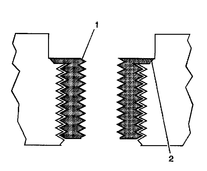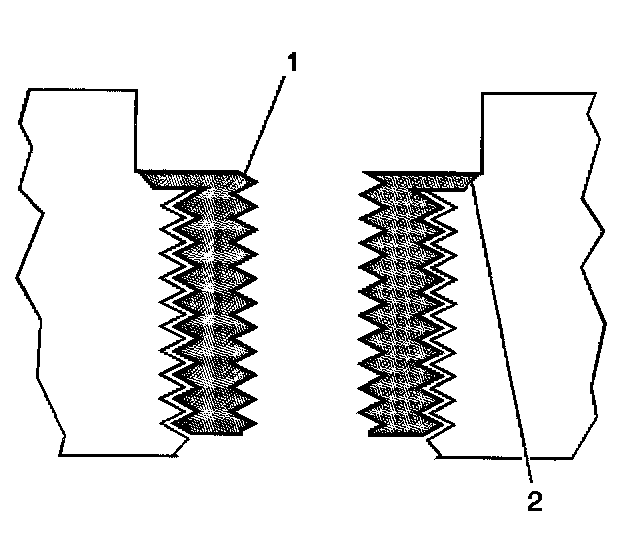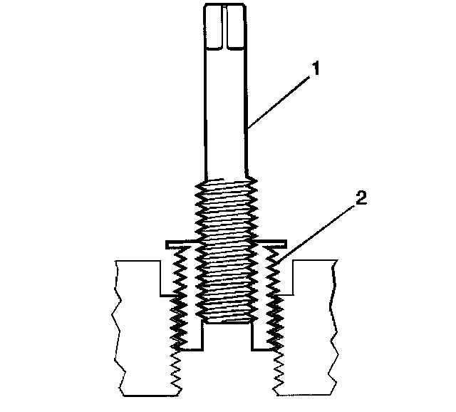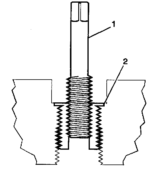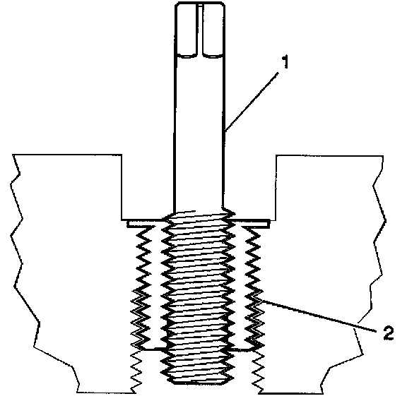 14. Inspect the insert (1) for proper installation (2) into the tapped hole.