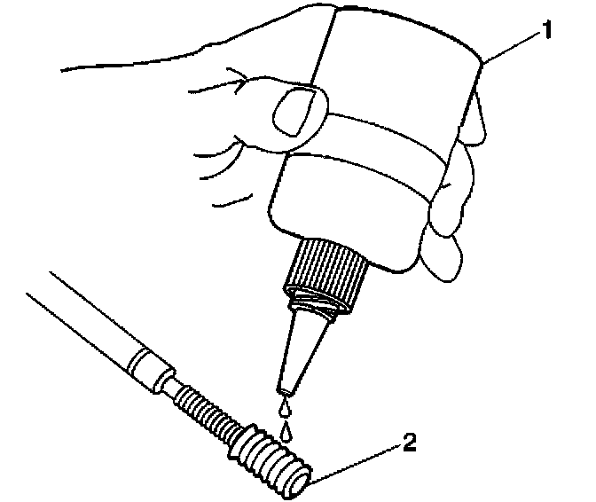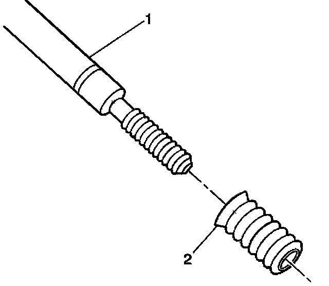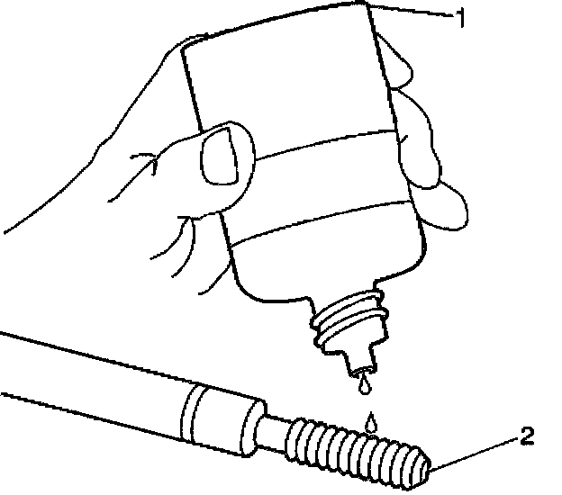 10. Apply threadlock sealant GM P/N 12346004, J 42385-109, LOCTITE 277 or equivalent (1) to the insert OD threads (2).