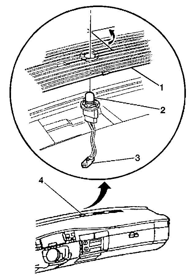 1. Remove the windshield defroster grille (1) by prying upward.