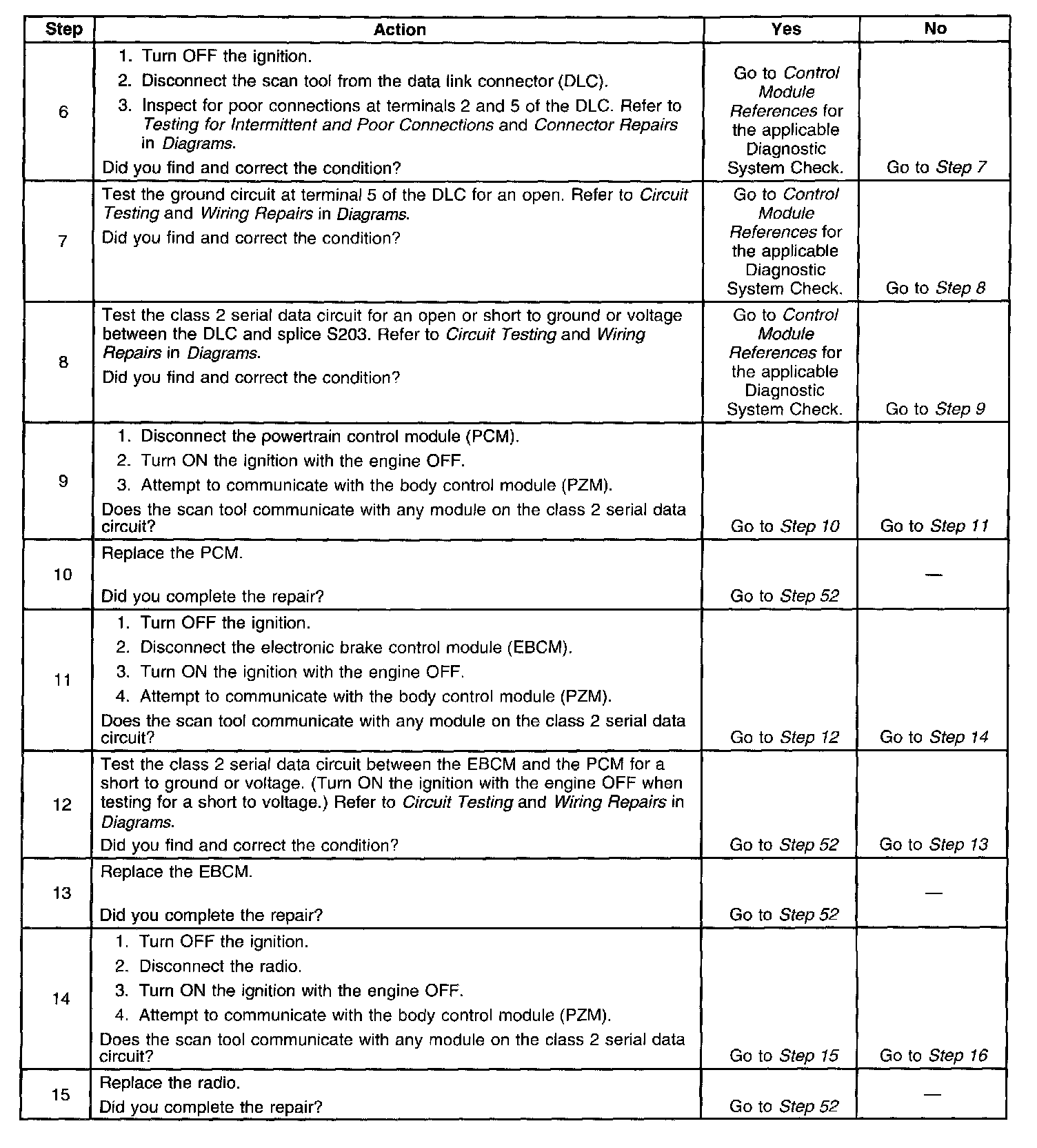 8. An open in the class 2 serial data circuit between the DLC and splice S203 will prevent the scan tool from communicating with any module. This condition will not set a DTC.