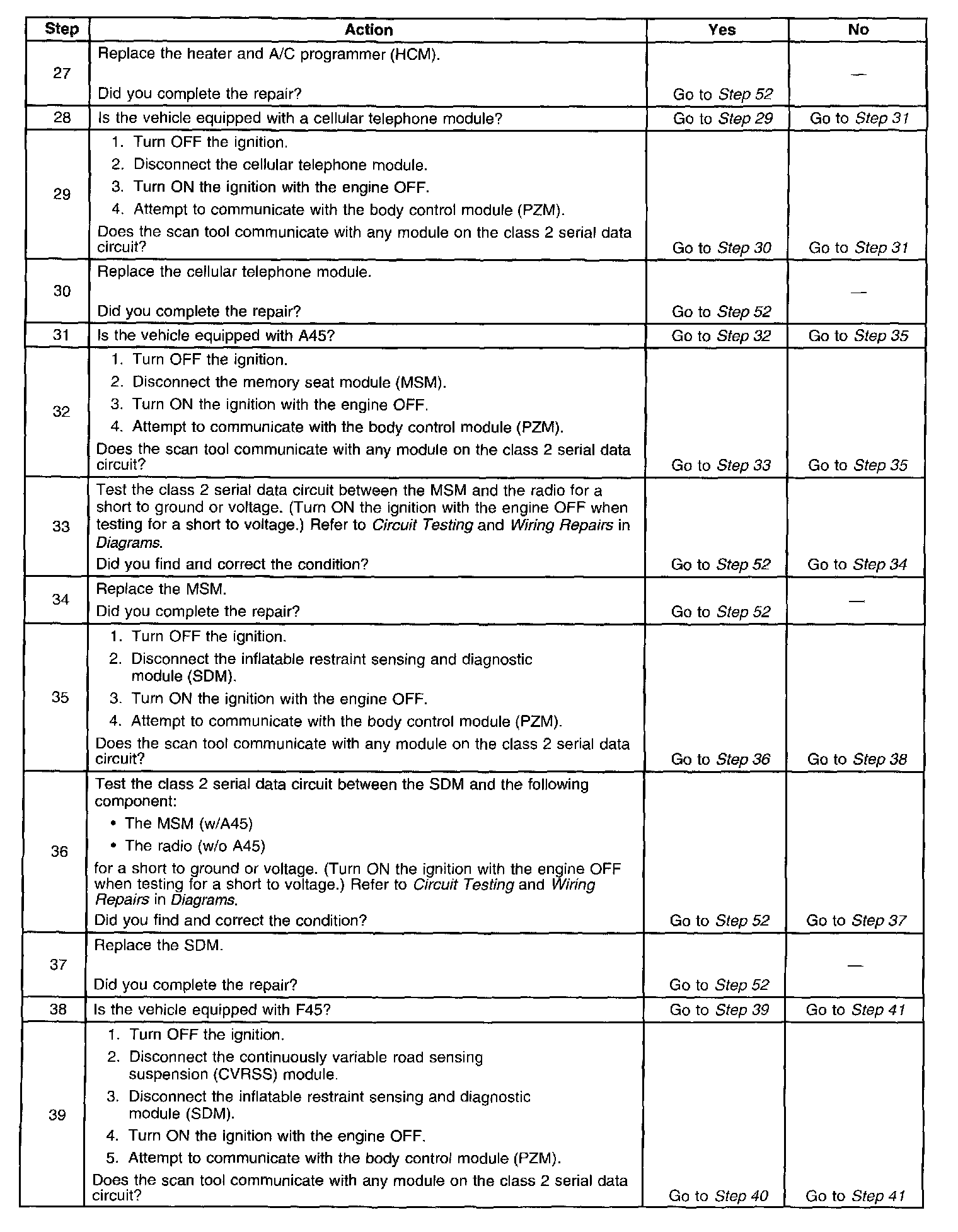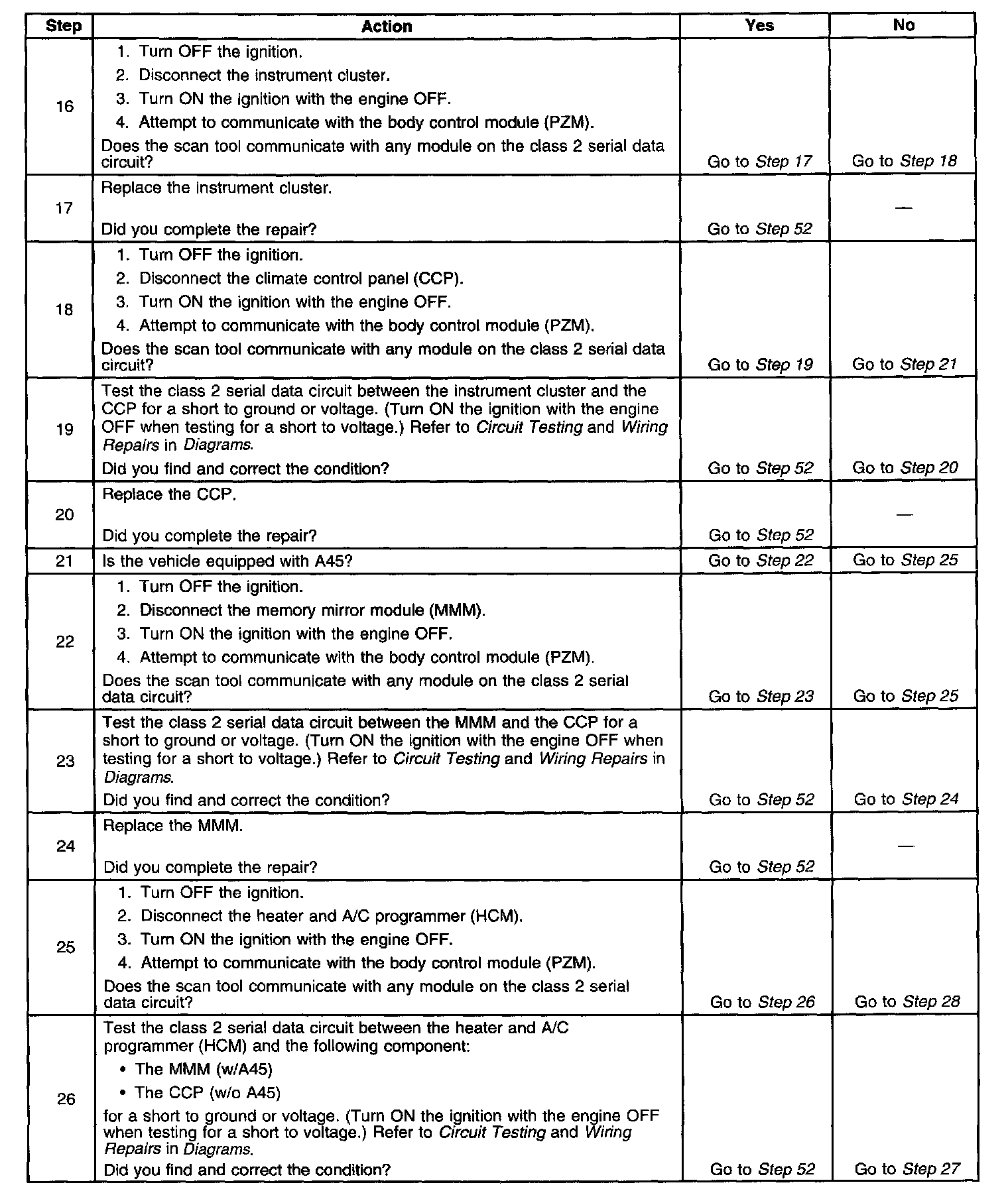 2. A partial malfunction in the class 2 serial data circuit uses a different procedure from a total malfunction of the class 2 serial data circuit.