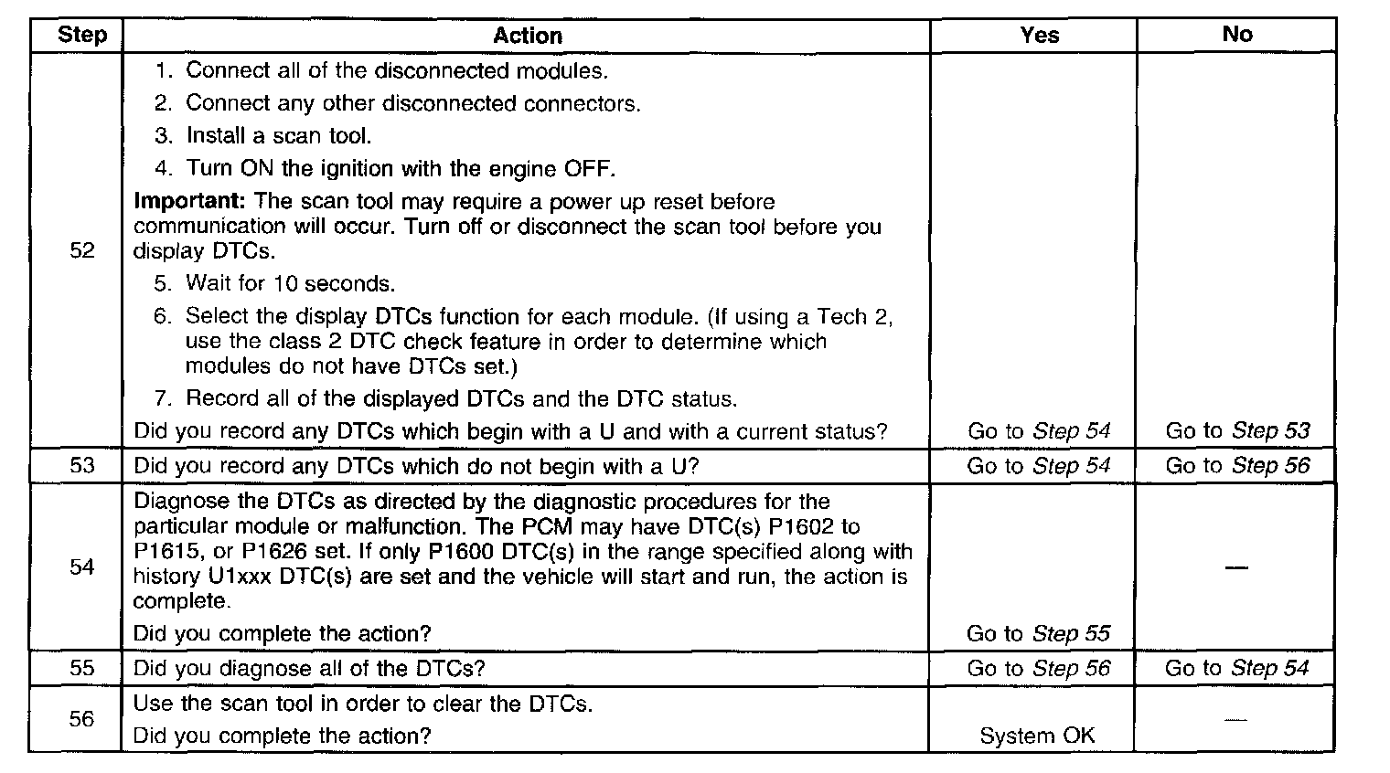 52. If there are no current DTCs that begin with a "U", the communication malfunction has been repaired.