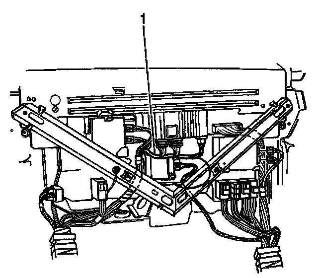 3. Press on the locking tabs in order to remove the RFA module (1) from the electronics bay board.