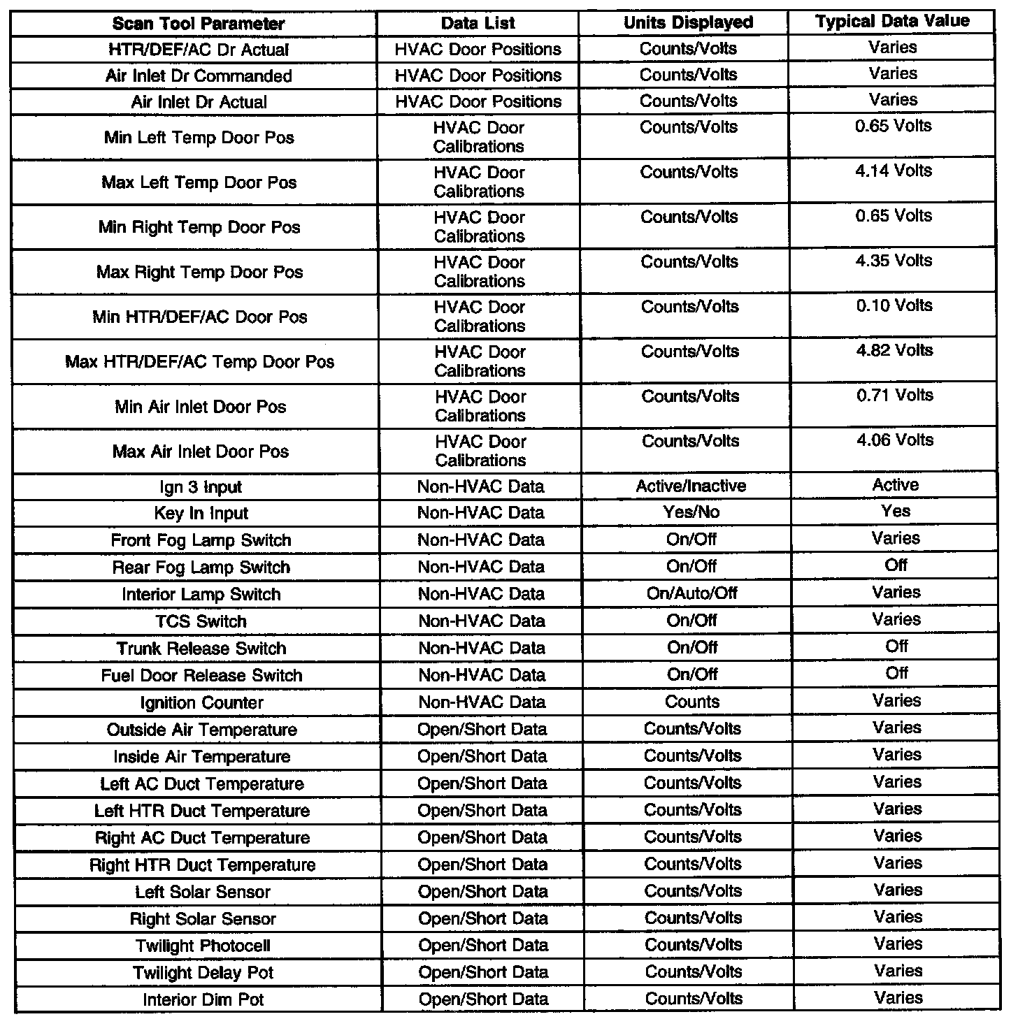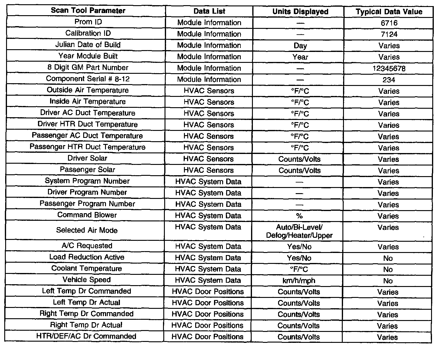 Scan Tool Data List