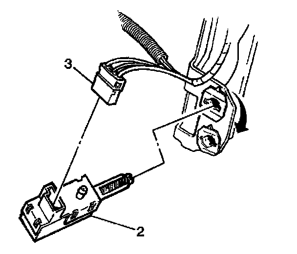 1. Insert the cruise release switch (2) into the retainer until the cruise release switch is seated against the brake pedal arm.
