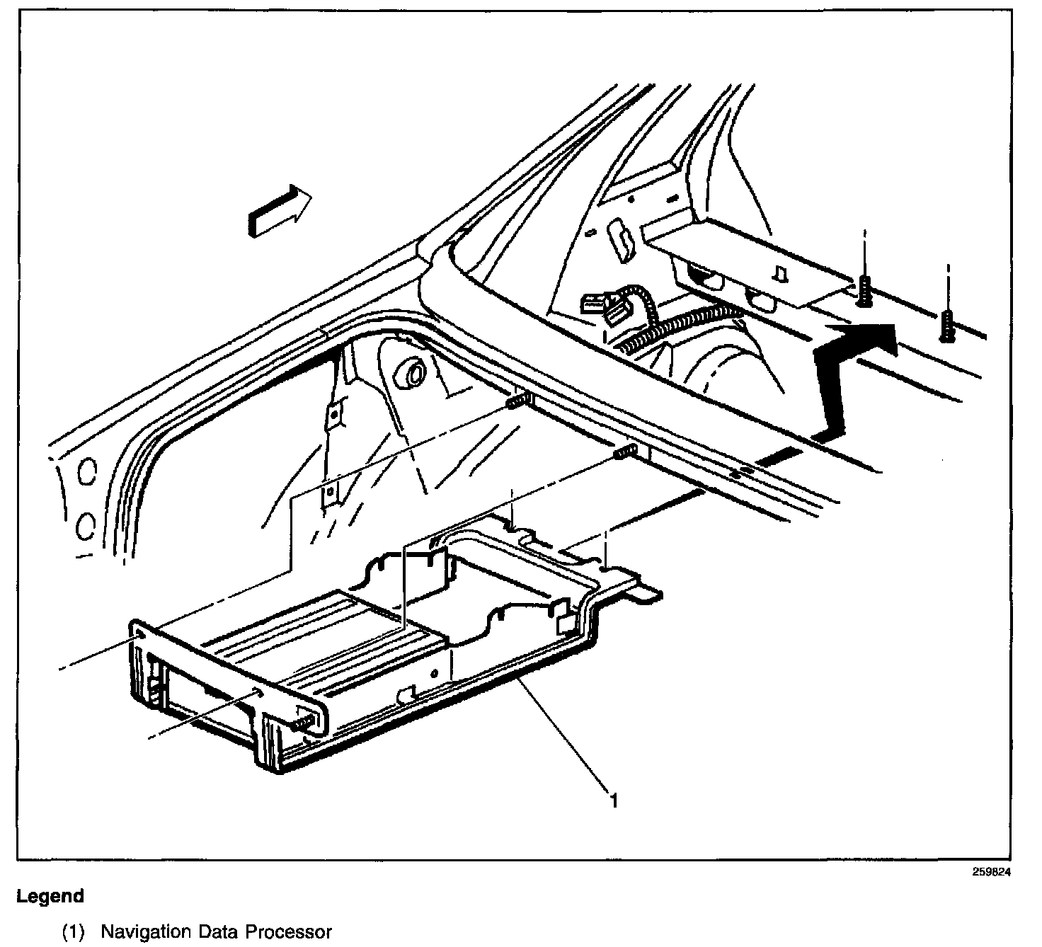 Center of the rear compartment, under the rear package shelf