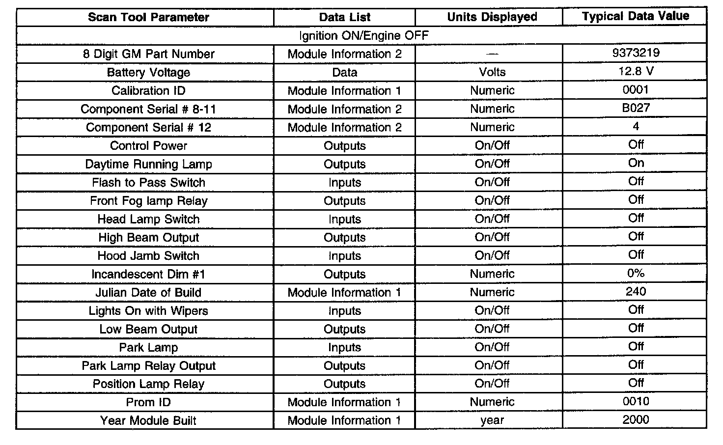Scan Tool Data List - Dash Integration Module (DIM)