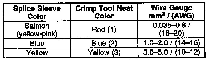 ^ Use the crimp and sealed splice sleeves on all types of insulation except tefzel and coaxial.