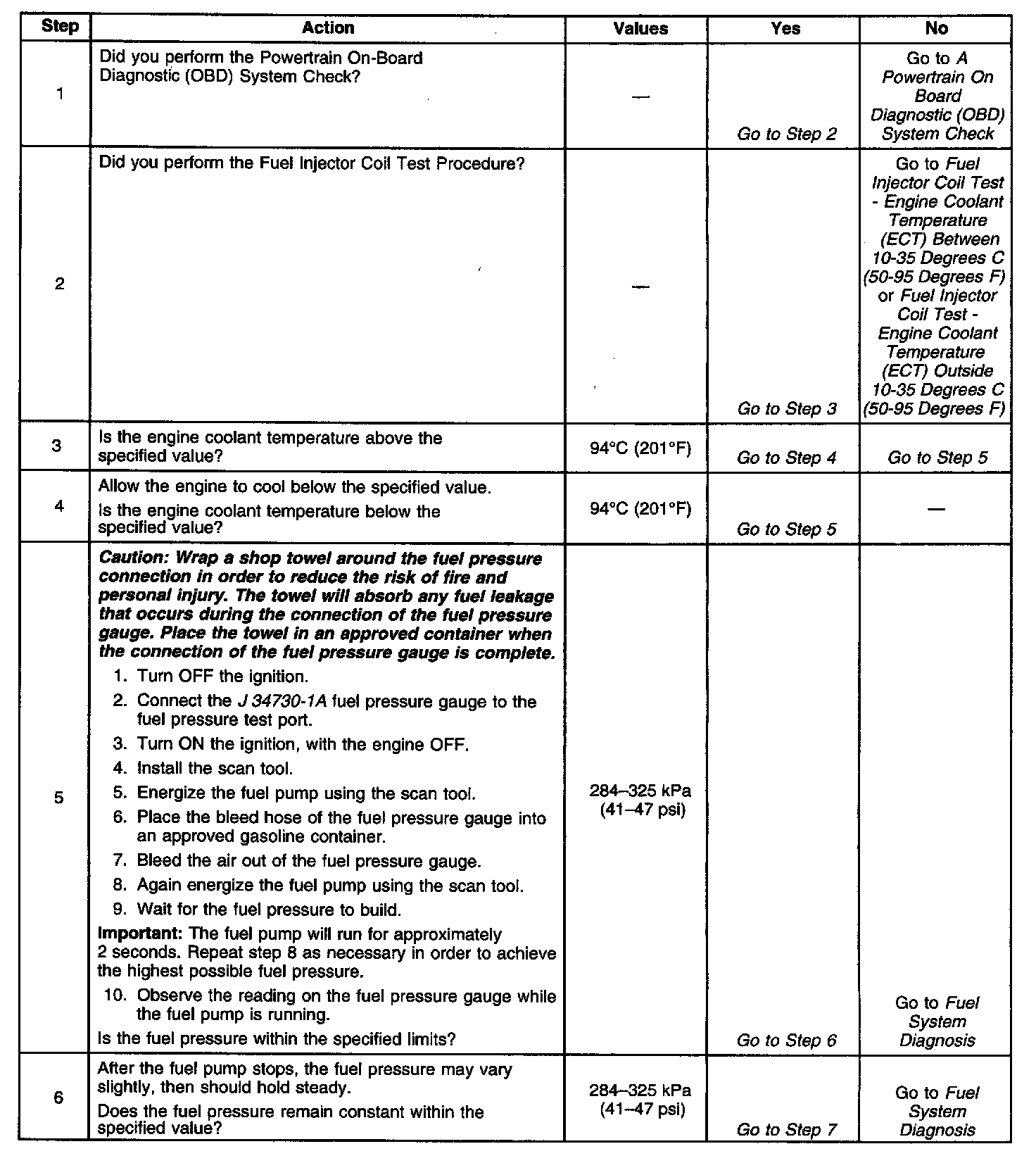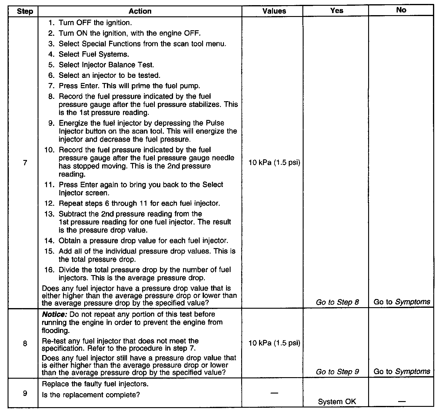 6. The fuel pressure should reach a steady value. If the fuel pressure does not reach a steady value, go to Fuel System Diagnosis.