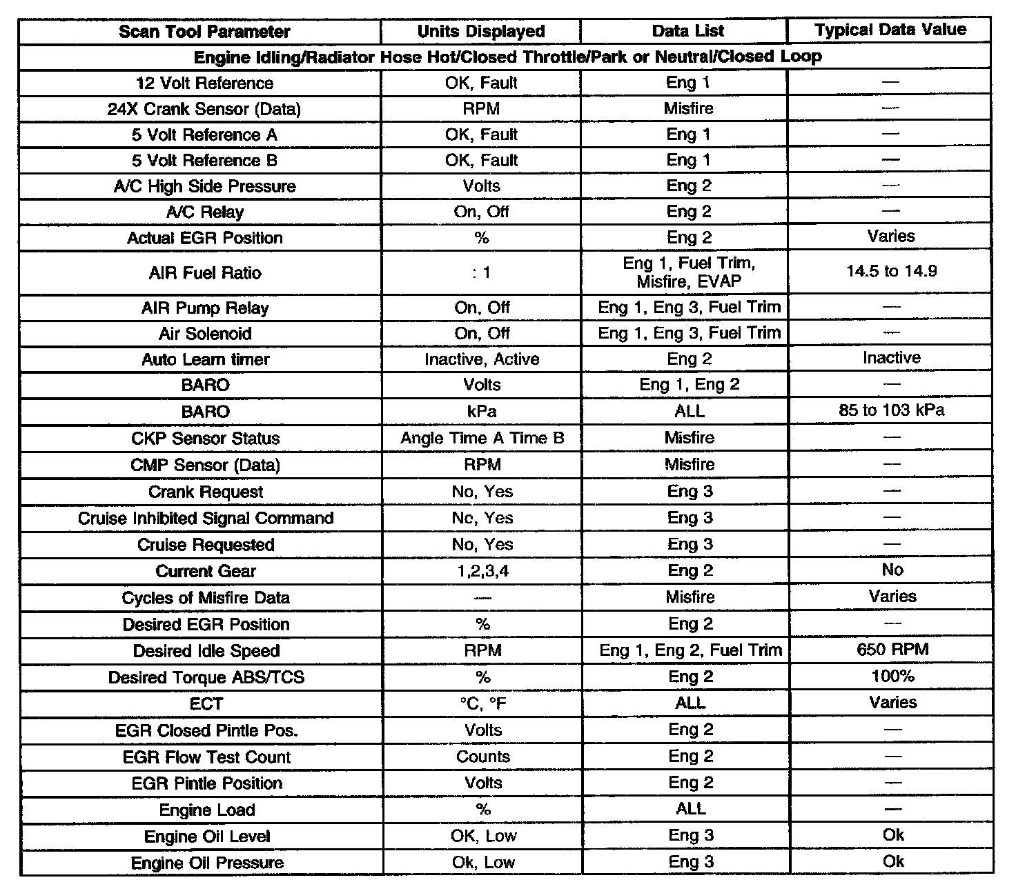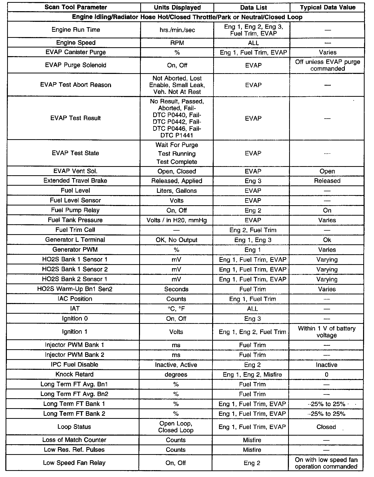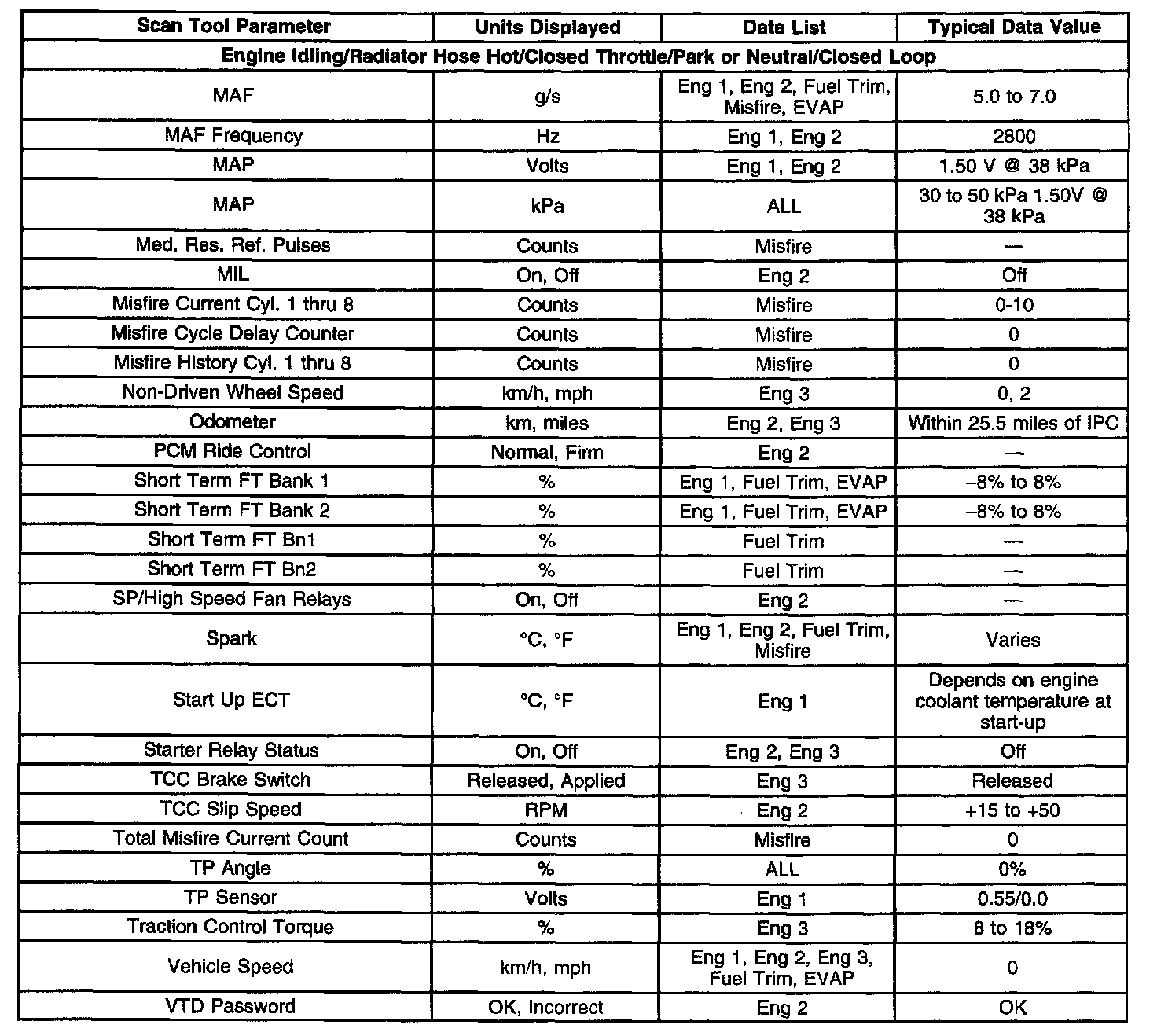 Scan Tool Data, Normal Values and Definitions