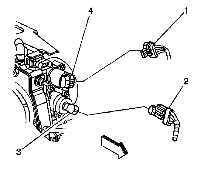 3. Remove the IAC electrical connector (1) from the AC sensor (4).