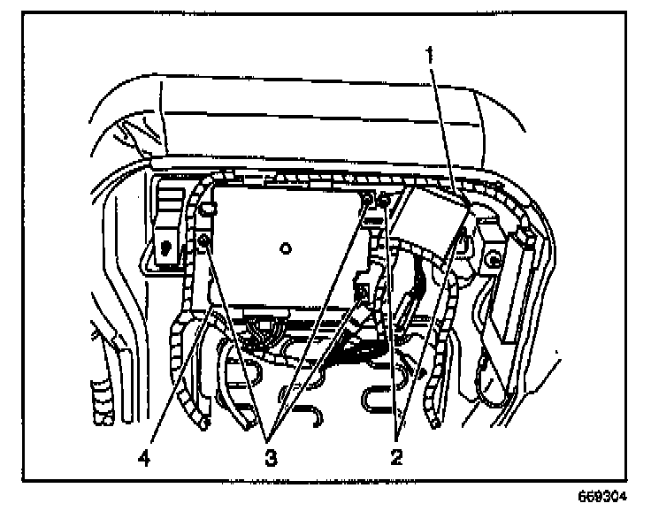 10. Drill out the rivets (2) retaining the heated seat module (1) to the seat cushion frame.