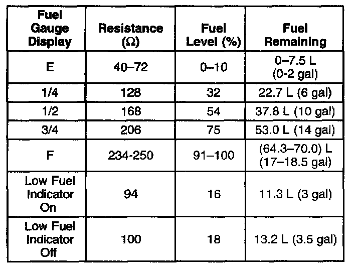 Fuel Level Specifications: